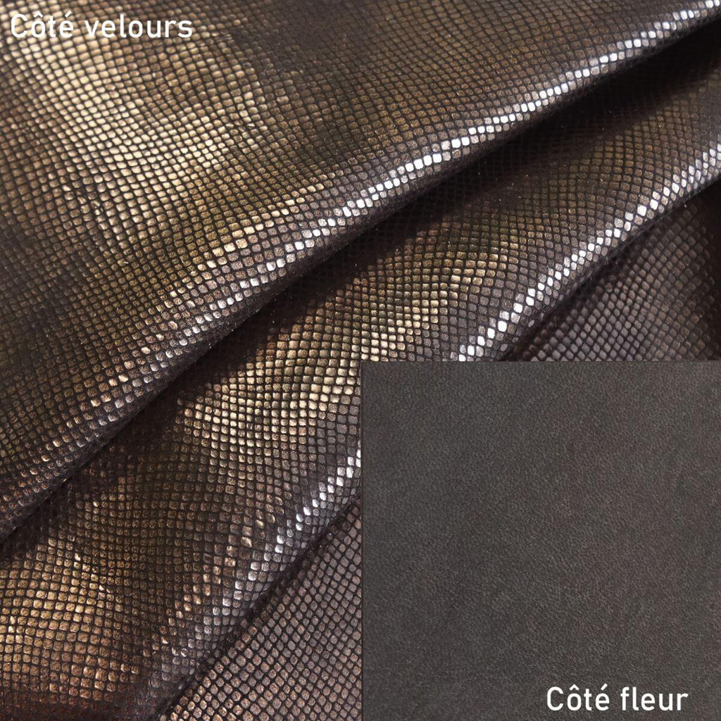 Verleihen Sie Ihren Lederwarenkreationen mit diesem imitierten Reptilienwildleder aus Ziegen einen Hauch von Fantasie und Exotik. Dieses geschmeidige und feine Leder lässt sich leicht verarbeiten.
