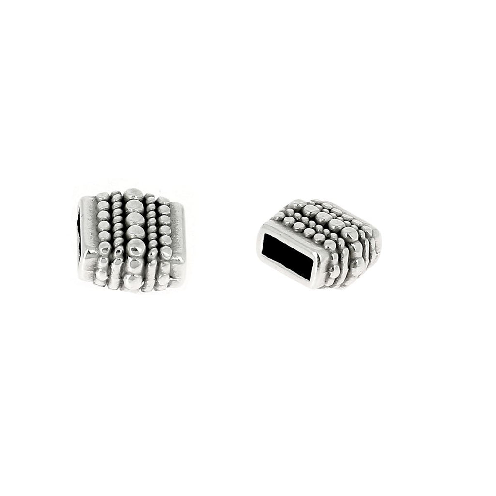 Diese verschiebbare Metallperle kann in eine flache Lederschnur mit einer Breite von bis zu 5 mm eingeschoben werden, um ein Modeschmuckstück oder ein handgefertigtes Accessoire herzustellen.