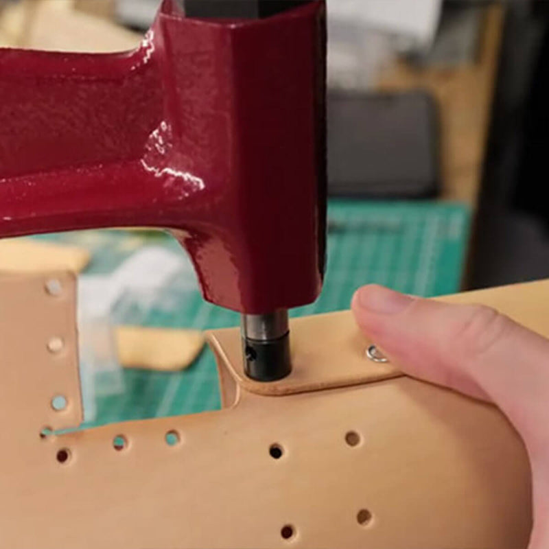 Diese Taille-Tischpresse ist eine professionelle Maschine zum mühelosen und perfekten Festziehen von Druckknöpfen, Ösen und Nieten. Sie können Löcher auch mit Bankdrückstempeln und einem Messingstift machen.