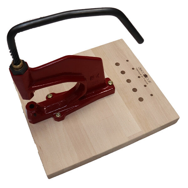 Diese N4-Tischpresse zur perfekten Befestigung all Ihrer Zubehörteile (Nieten, Ösen, Druckknöpfe) ist bereits auf einem Sockel aus Buchenholz montiert.Mit dieser Tischpresse der Größe N4 ist eine professionelle Maschine zum mühelosen und perfekten Festziehen von Druckknöpfen, Ösen und Nieten bis 20 mm Durchmesser möglich. Mit Hilfe von Tischpressen-Stanzen bis 15 mm Durchmesser und einem Messingstift können Sie außerdem Löcher bohren.
