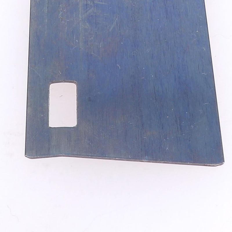 Dieses Lineal aus blauem Stahl dient als Führung zum präzisen Falten des Leders, damit es anschließend auf sich selbst geklebt werden kann.