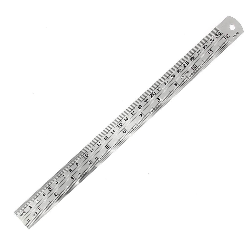 - Für das 30-cm-Lineal: 1 Unterkante ist 16 Zoll. Die ersten 4 Zoll haben eine Unterteilung von 32 Fuß Zoll und zwischen dem 3. und 4. Zoll gibt es eine Unterteilung von 64 Fuß Zoll.