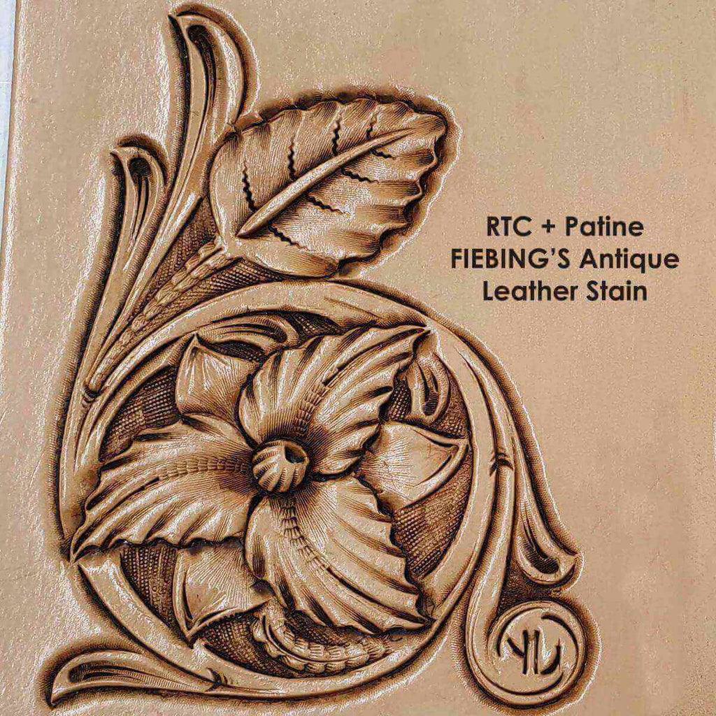 Der RTC wurde speziell entwickelt, um Ihre Präge- und Modellierarbeiten hervorzuheben. Dieses professionelle Produkt hat zwei Verwendungsmöglichkeiten. Das erste wird als Porenfüller verwendet, d. h. es ermöglicht Ihnen, Bereiche des Leders abzudecken, die Sie nicht färben möchten, damit die Pigmente beim Färben nicht am Leder haften bleiben. Die zweite Verwendung besteht darin, dass es als Fixiermittel nach dem Färben/Patinieren dient. Es verleiht Ihren Kreationen zusätzliche Widerstandsfähigkeit, sodass sie länger halten.Wegen der Porenfüllerfunktion sollte dieses Produkt nach Abschluss der Prägung aufgetragen werden. Tragen Sie es großzügig mit einem Schaffell auf Ihre gesamte Arbeit auf, um ein klassisches Relief zu erhalten (das heißt, die geprägten Reliefs werden dunkler und die nicht geprägten heller). Sie können auch selektiv maskieren, indem Sie RTC mit einem feinen Pinsel auf die zu schützenden Bereiche auftragen.