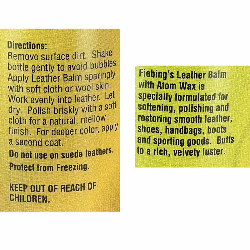 Fiebing's Lederbalsam ist ein flüssiges Wachs, das speziell zum Erweichen, Polieren und Wiederherstellen von Glattleder wie Gürteln, Schuhen, Handtaschen, Stiefeln, Sportartikeln und mehr entwickelt wurde.