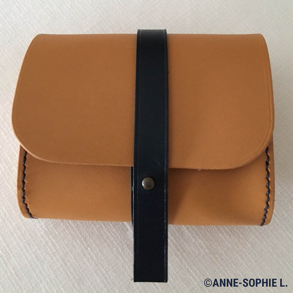- Before cutting the sides and in order to have full grain leather on both sides of the piece: glue 2 pieces of leather together.