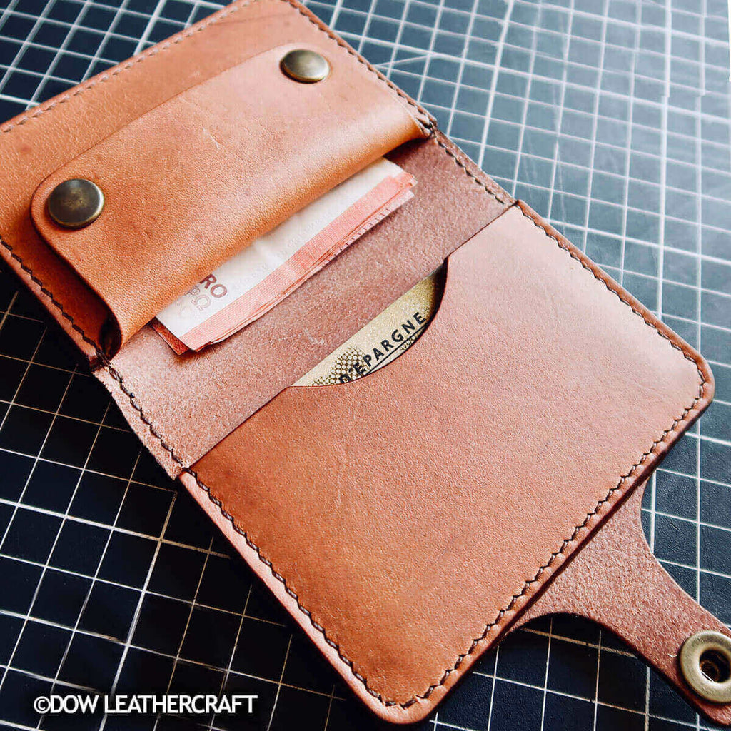 - Make 1 3 mm hole in the leather for the foot and 1 5 mm hole for the cap (button side).