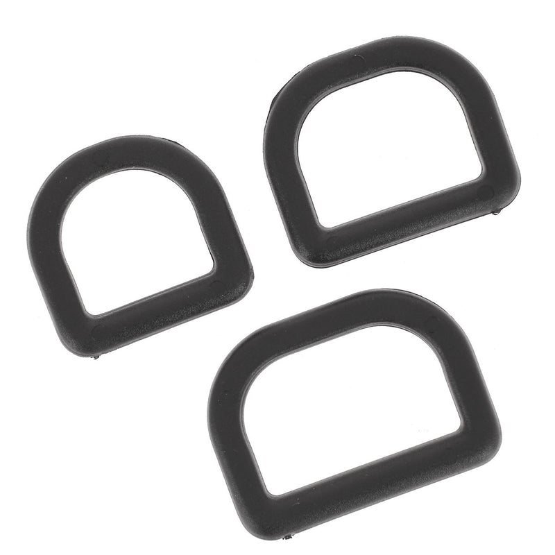 Lightweight, sturdy and easy to attach, this half-round black plastic ring allows you to attach a strap, handle or lanyard to your DIY bag (belt bag, backpack, sports bag, camera bag, etc.).