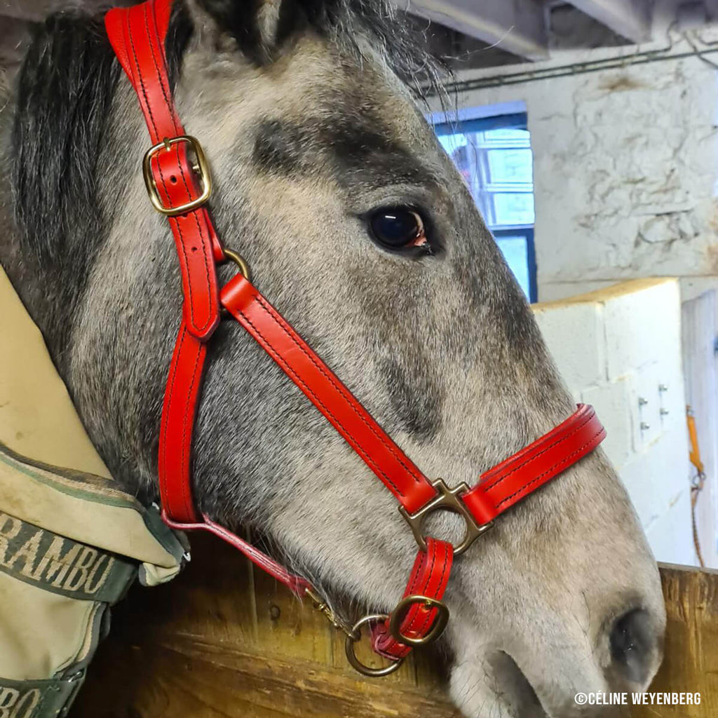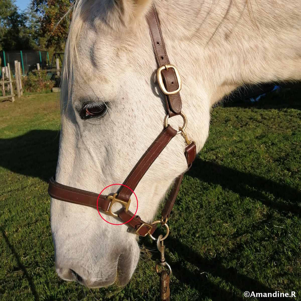 It is used in pairs to fix the noseband on each side of the horse's nose.