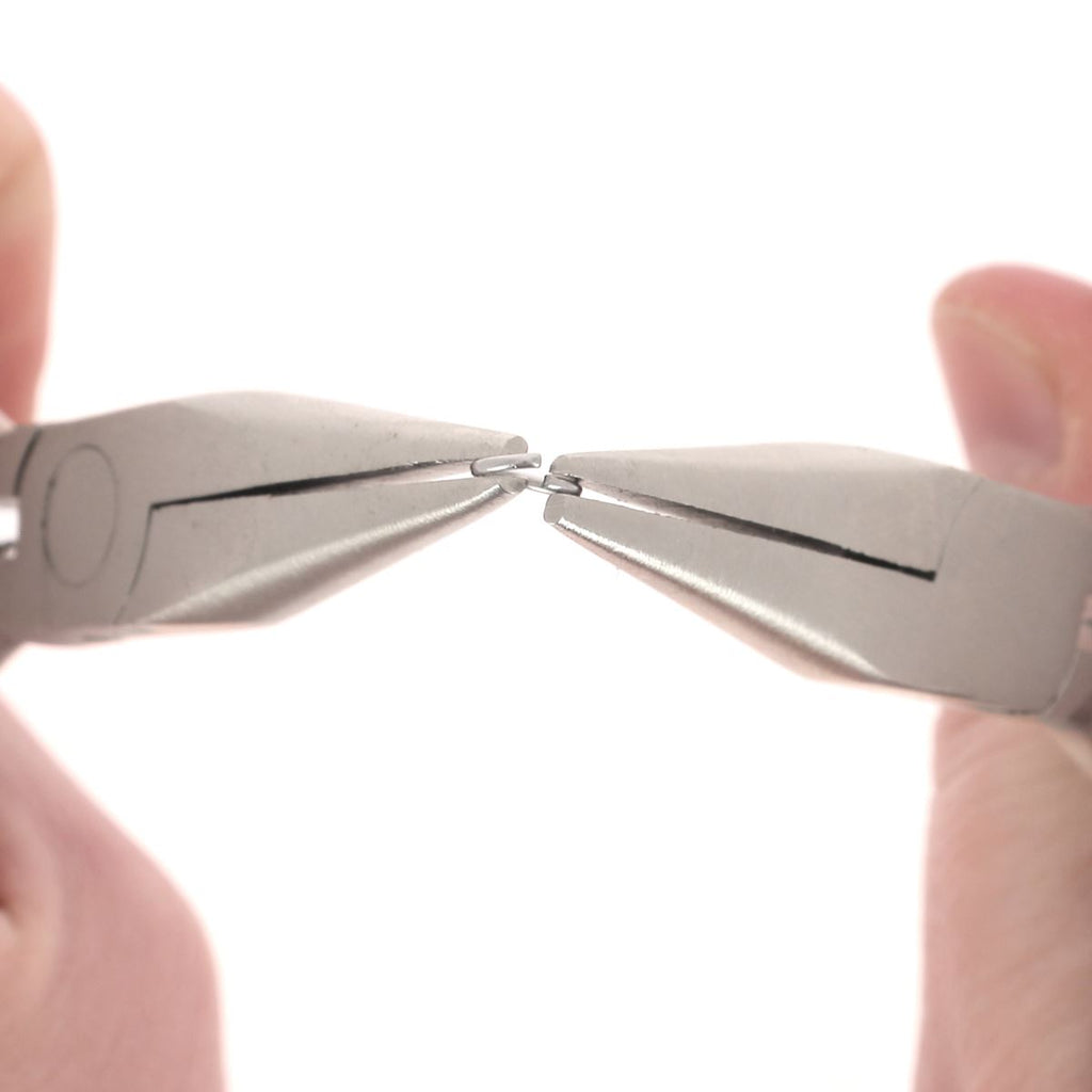 To open the jump ring without deforming or scratching it, it is recommended to use 2 flat pliers with smooth jaws to grasp each end and then rotate it to the sides (do not spread the ring apart). Insert the elements. Then close the ring by twisting it in the other direction so that the 2 ends are perfectly facing each other.