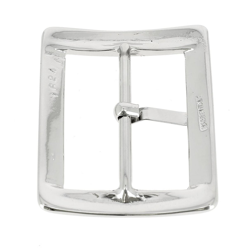 Rectangle-shaped double pin buckle for a leather strap up to 50 mm wide.