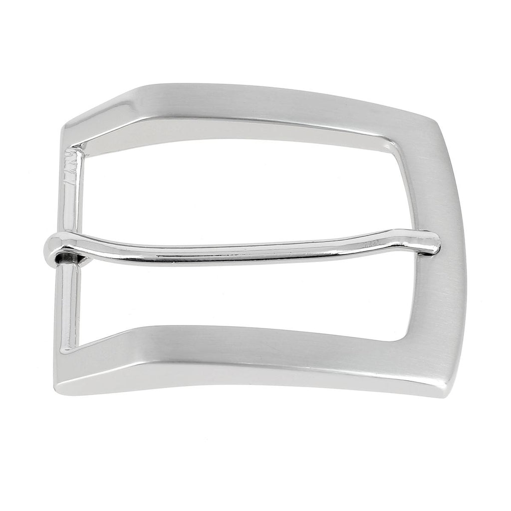 Combine contemporary style and simplicity with this satin nickel-plated belt buckle, with a rectangular and slightly curved design.