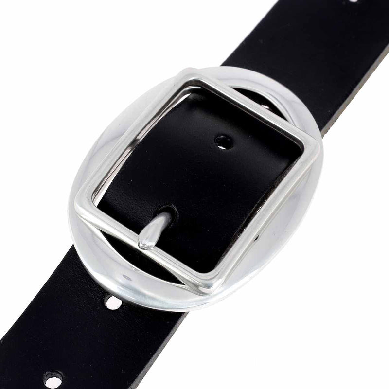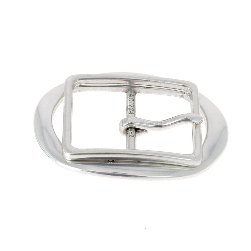 Double tongue belt buckle for a leather strap up to 35 mm wide. This loop mixes geometric figures: the rectangle is superimposed on the oval shape and thus creates relief. The 35 mm strap perfectly fits the size of the rectangle and will make your belt (or other leather creation) both original and timeless.