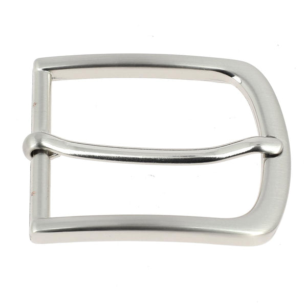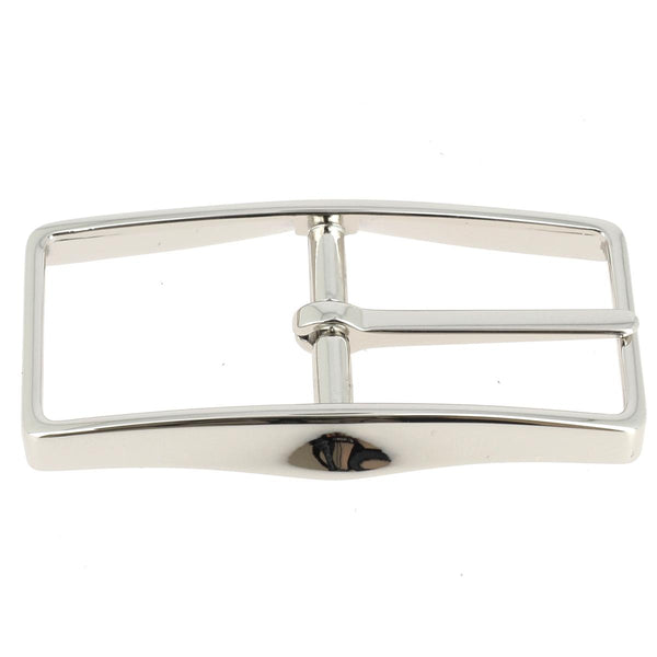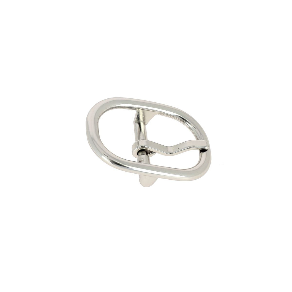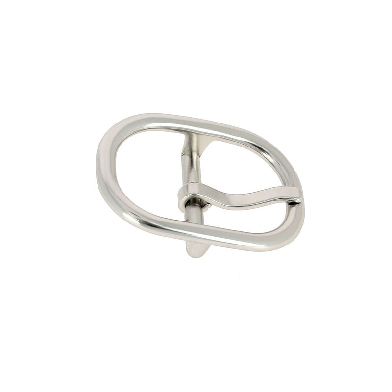 Double pin buckle for a leather strap. Fine and elegant, this buckle will not go unnoticed. The axis of the barb is offset to facilitate the passage of the strap.