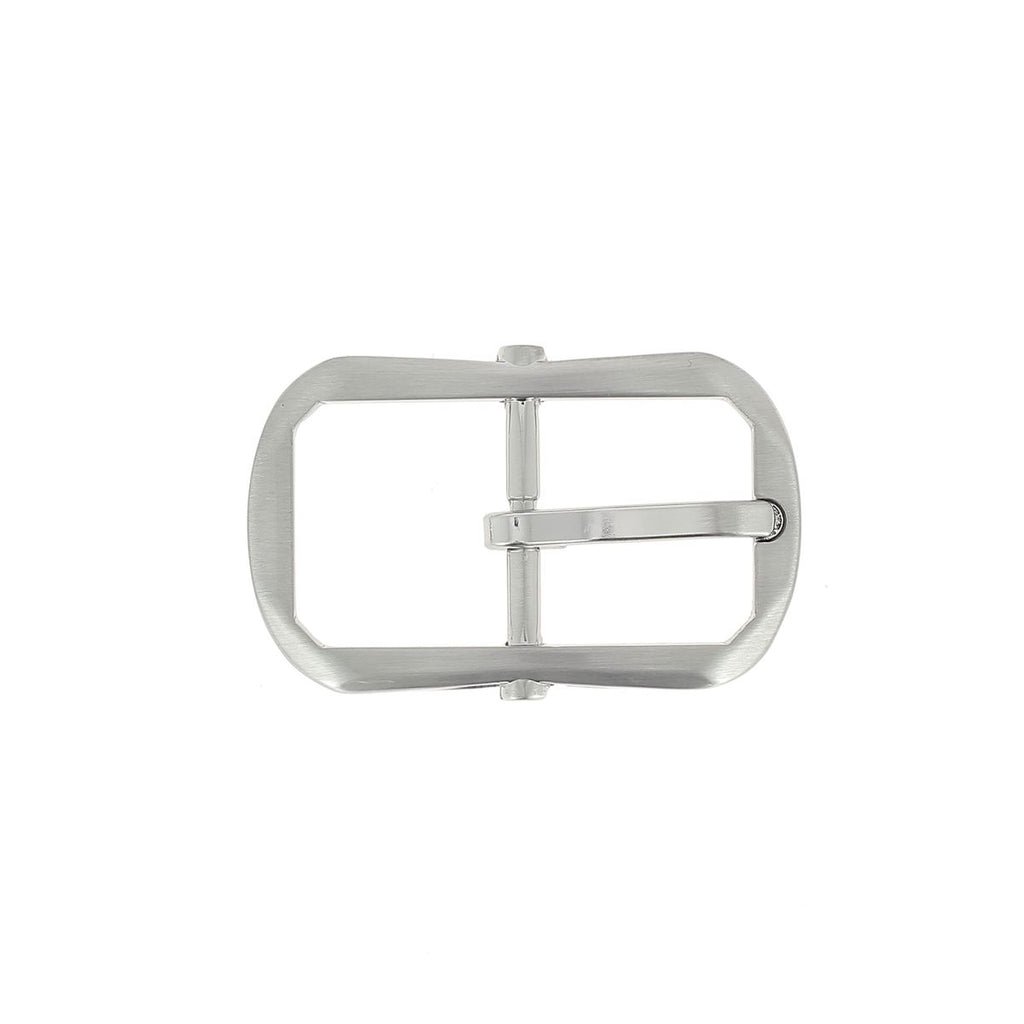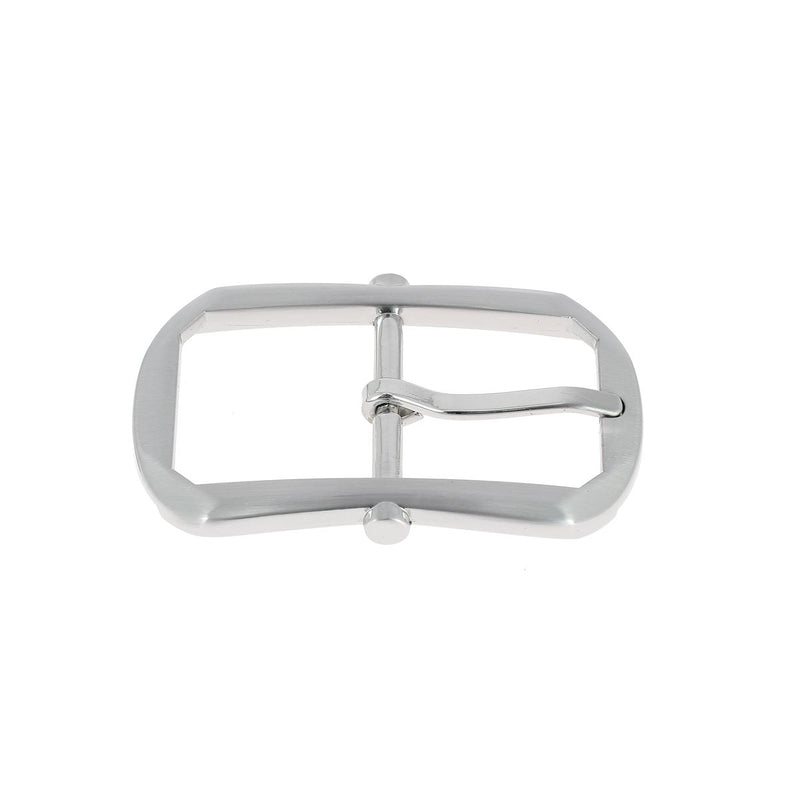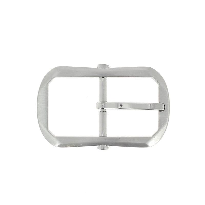 Double-prong belt buckle for a leather strap. The modern shape and brushed (satin) finish give the buckle a very chic look to enhance your belts and other creations.