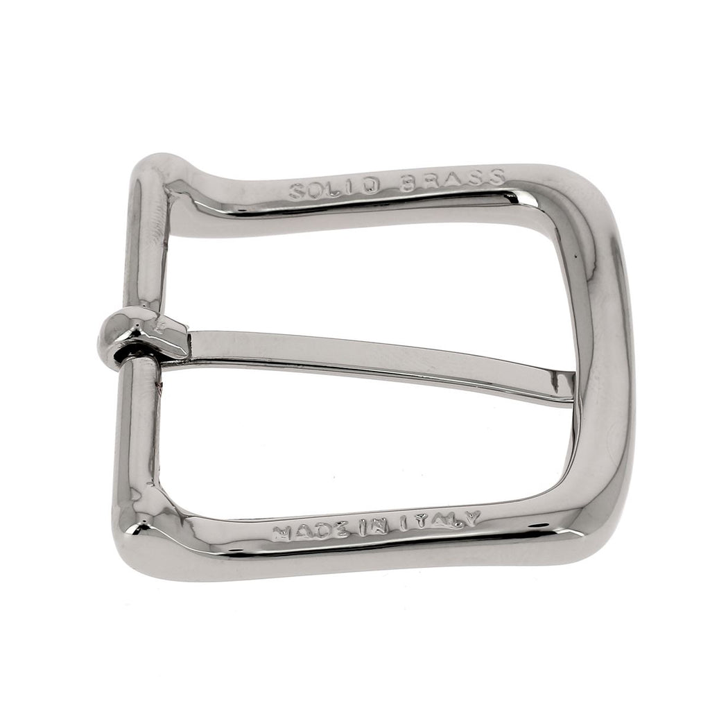 Pin buckle, slightly curved, for a leather strap up to 35 mm wide.