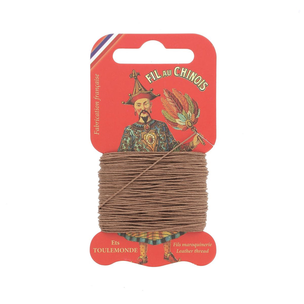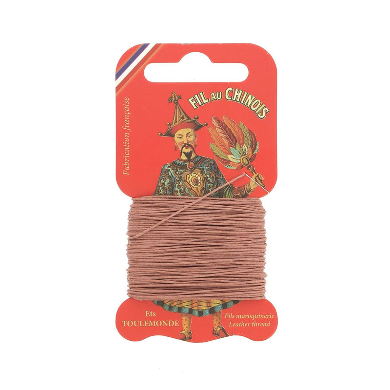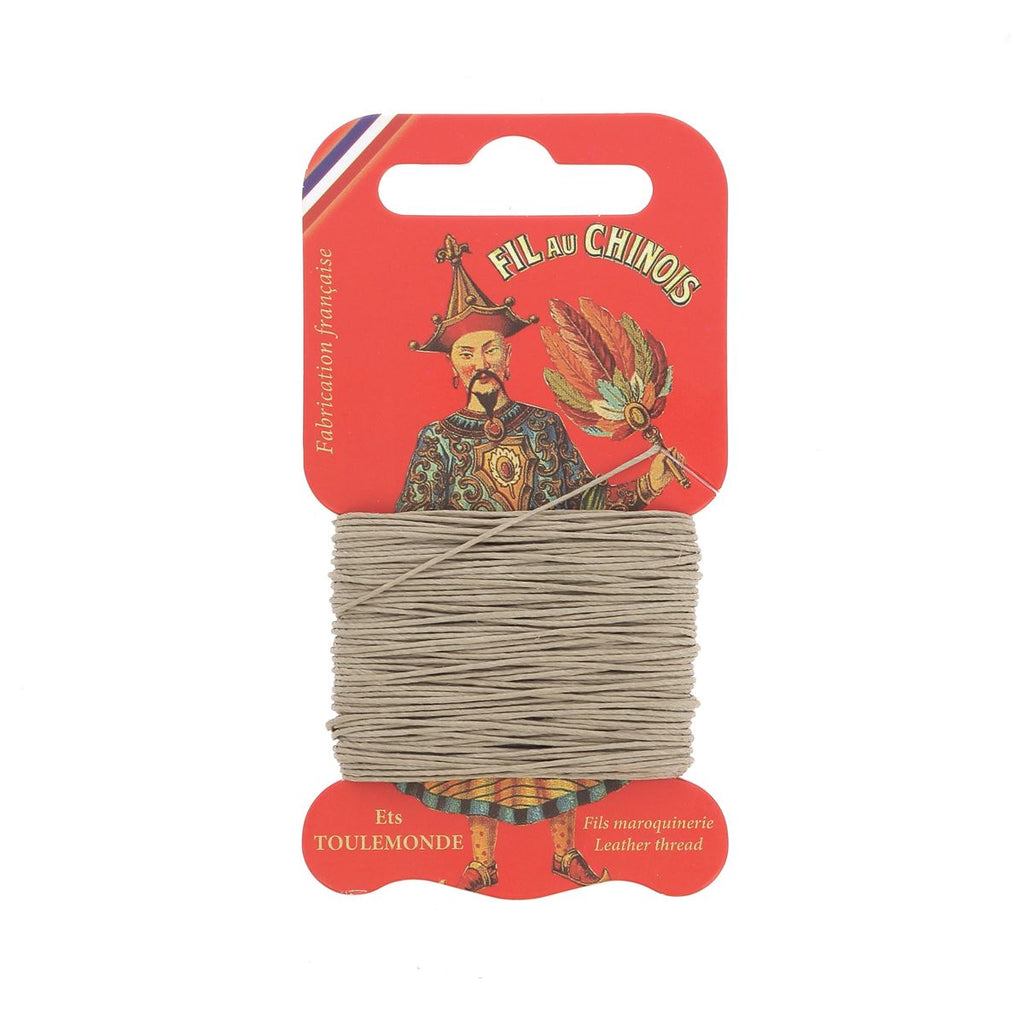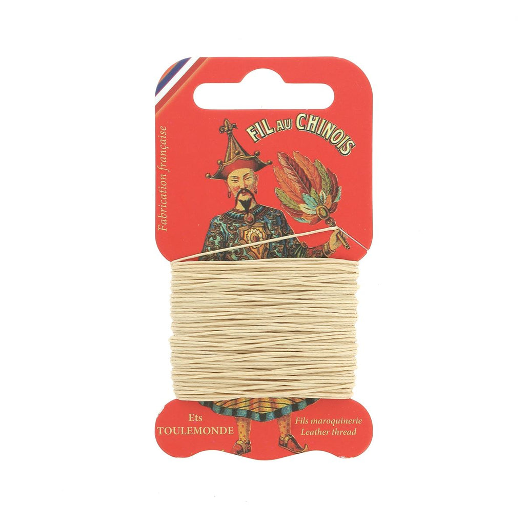 This linen thread is glazed, which means that it has been put through a starch bath to which beeswax has been added. It has then been brushed with horsehair and stretched. These operations give a smooth and strong thread that has rigidity, a good glide to facilitate sewing and hold.