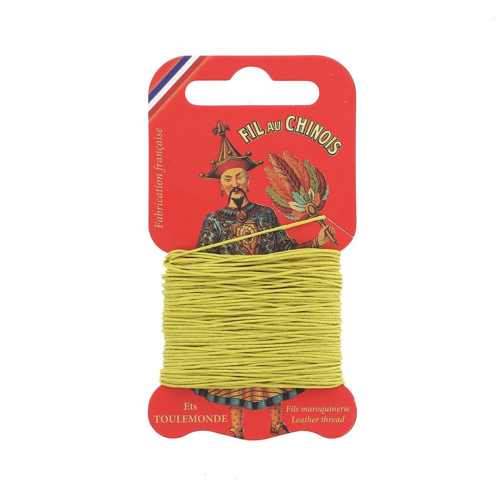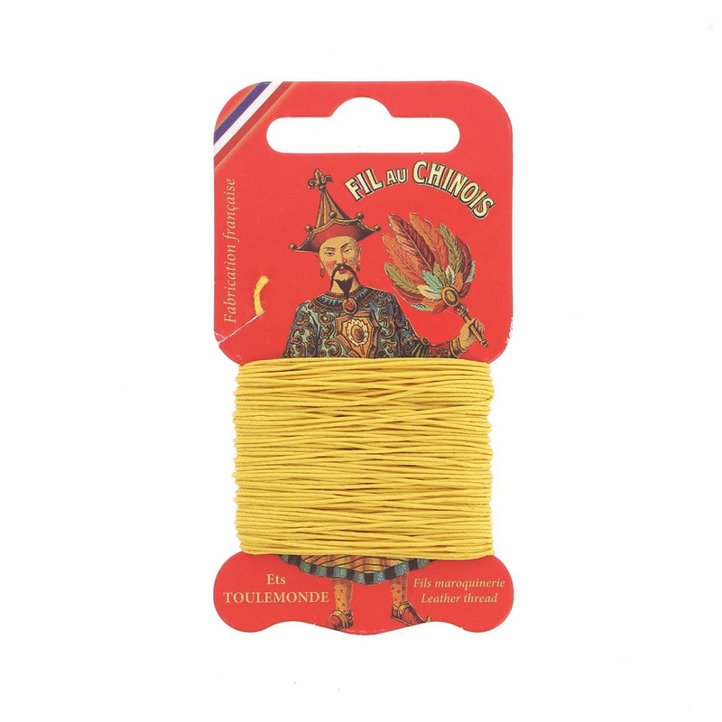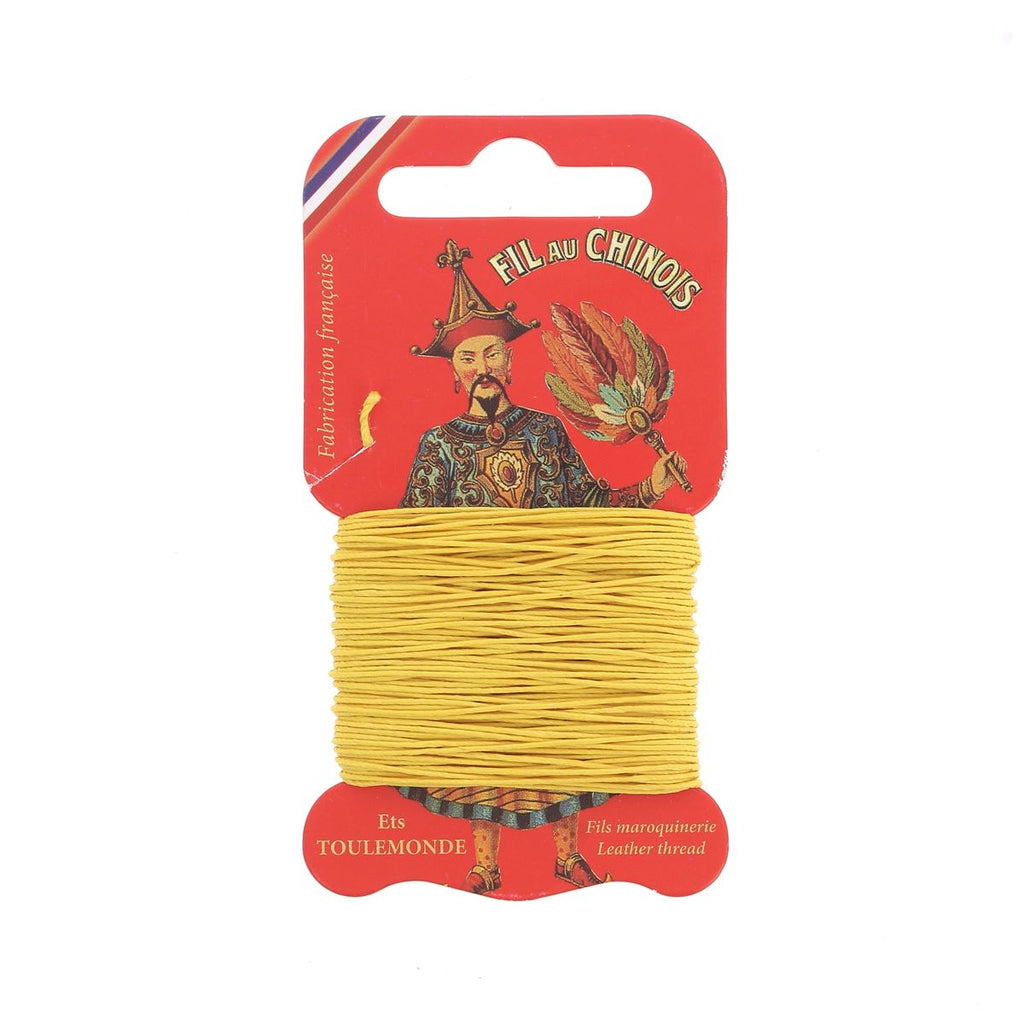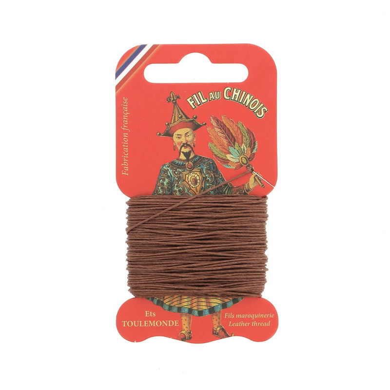 This linen thread is glazed, which means that it has been put through a starch bath to which beeswax has been added. It has then been brushed with horsehair and stretched. These operations give a smooth and strong thread that has rigidity, a good glide to facilitate sewing and hold.