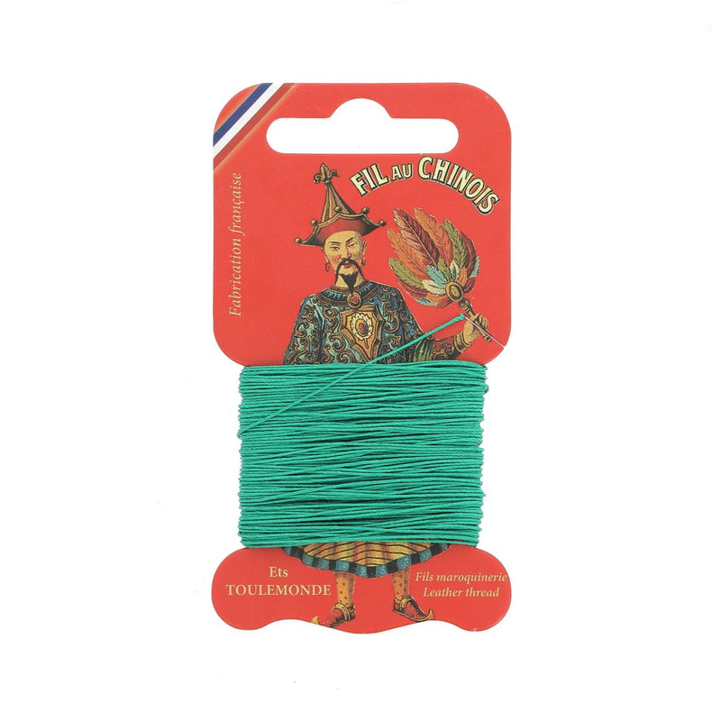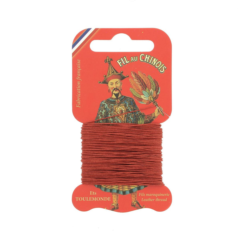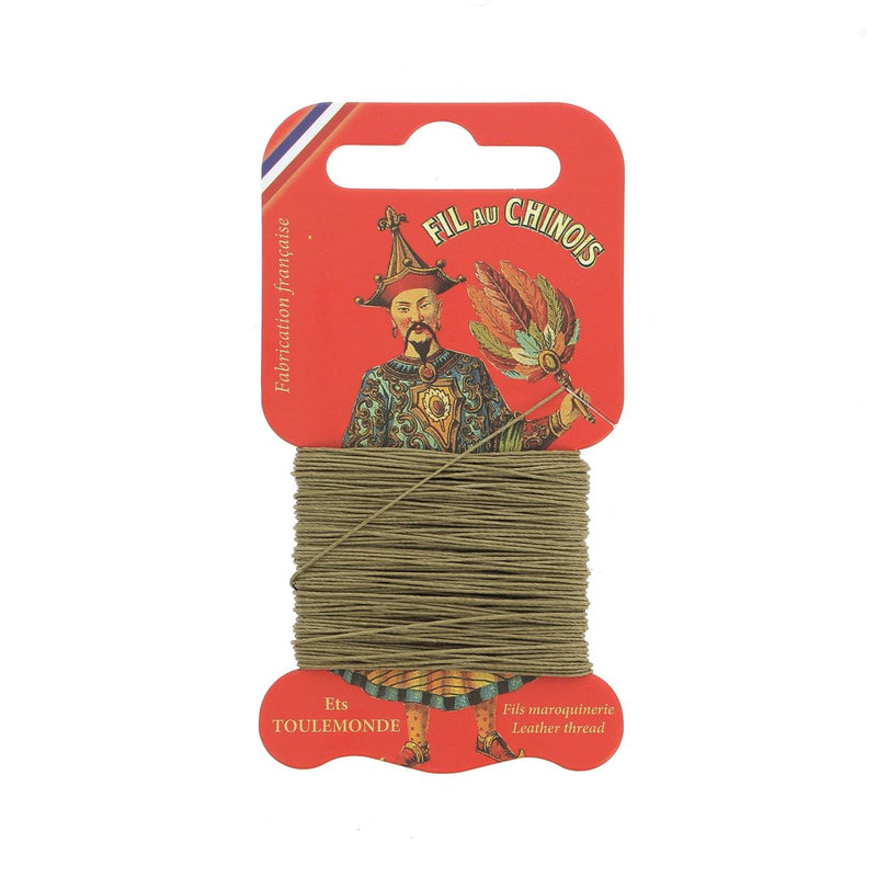 This linen thread is glazed, which means that it has been put through a starch bath to which beeswax has been added. It has then been brushed with horsehair and stretched. These operations give a smooth and strong thread that has rigidity, a good glide to facilitate sewing and hold.
