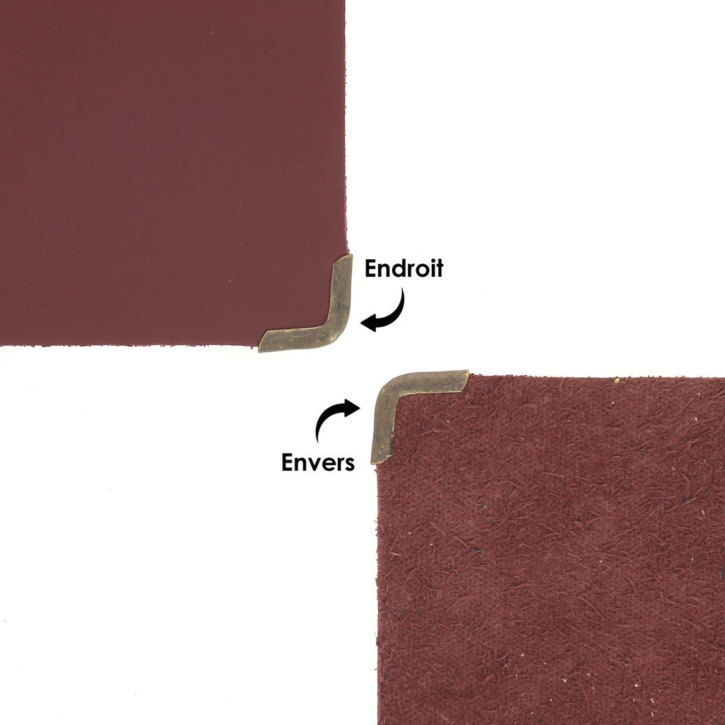 Easy to attach : Cut the corner of the leather to round it slightly. Insert the leather into the metal corner then tighten with flat jaw pliers. In order not to mark the metal corner, it is recommended that the jaws of the pliers be covered with leather ( we recommend using umbrella pliers ref. TA058 ).