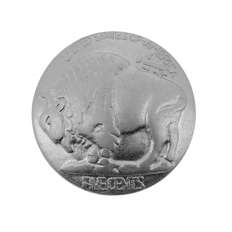 Personalize your creations with this round, matte nickel-plated rivet concho, representing a bison.
