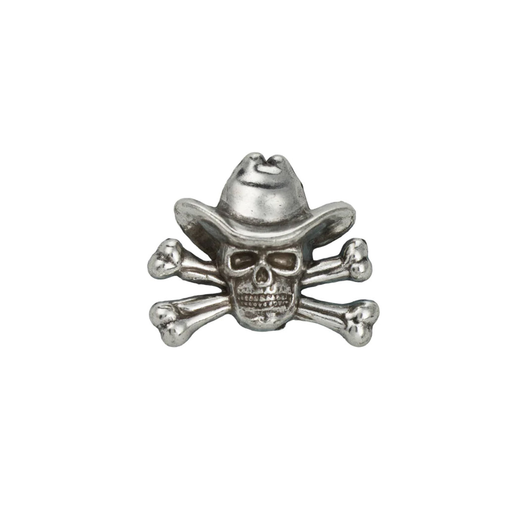 This decorative concho represents a skull wearing a cowboy hat. It is ideal for those who want to stand out and display a unique style on a jacket, belt, key ring, jewelry, bag...