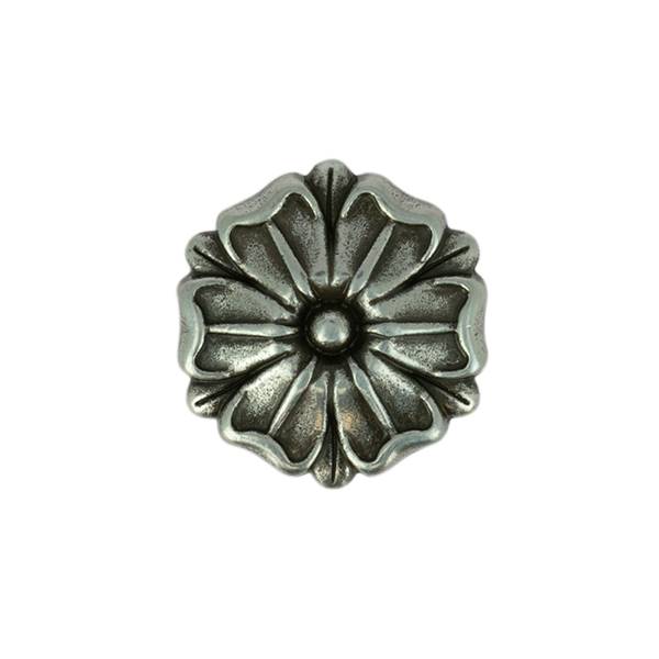 This antique silver concho is attached using a metal screw provided that you must screw in using a flathead screwdriver.