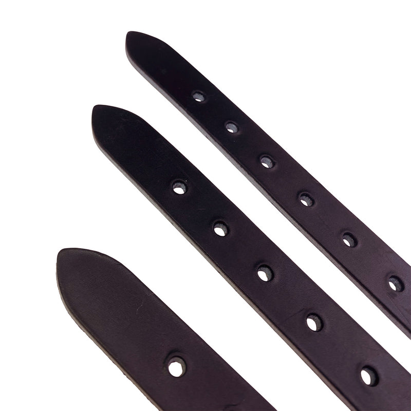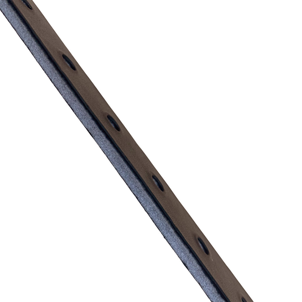DELLA chocolate-colored stretched girth straps are made from one-third full-grain, uncorrected, smooth-grained rump leather. Unlike vegetable-tanned leathers, they undergo a chrome mineral tanning process, which produces naturally blue edges, a sign of quality leather and controlled tanning. This tanning process is a key step that gives them increased strength and predictable tensile strength.