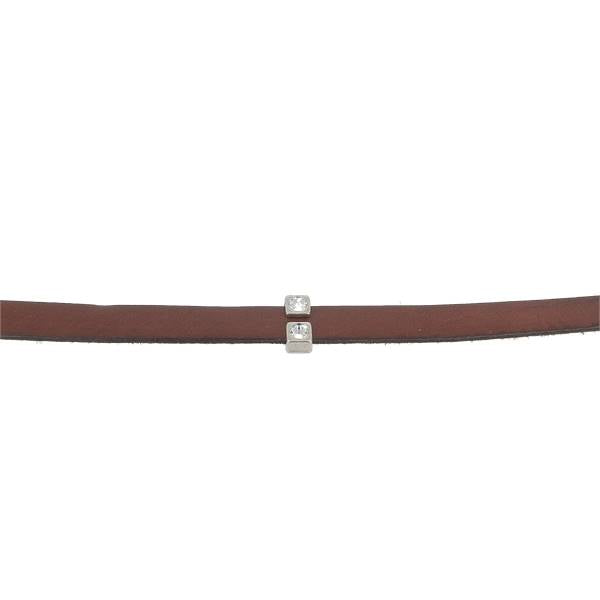 Classic slider with two holes for a leather strap up to 10 mm wide and 2.5 mm thick. Ideal for your creations of bracelets, jewelry and decorations.Material: Zamac guaranteed nickel free