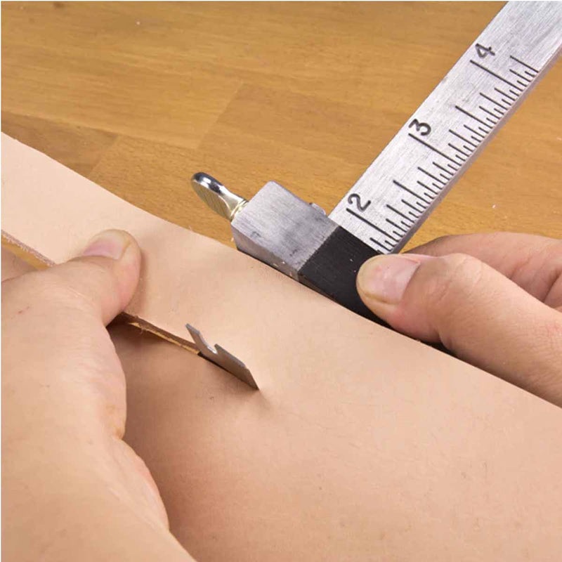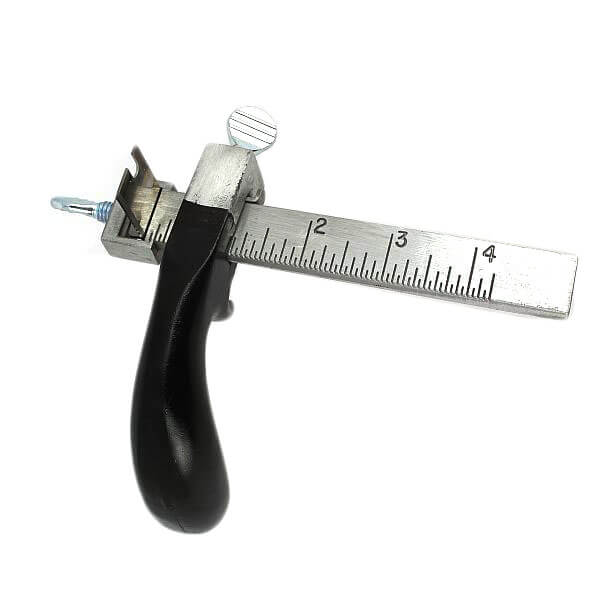 This metal strap cutter allows you to cut leather straps, bands, belts, etc. with a width between 5 mm and 10 cm ( rule graduated in inches engraved on the tool) . For firm or soft leathers: no thickness limit (works best on firm and thick collar type leathers).