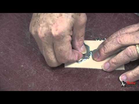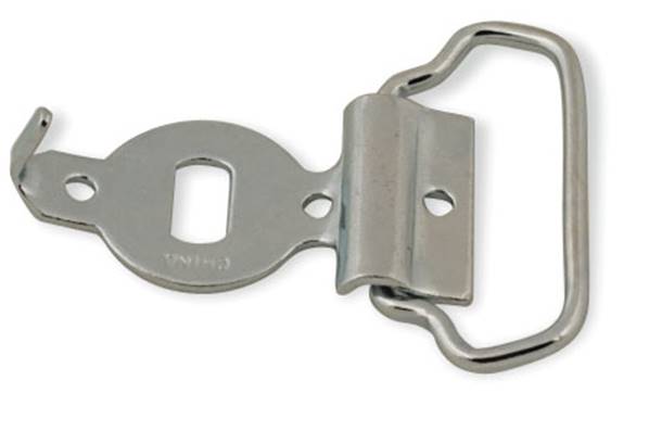 As on a belt, fix the end of the belt around the ring using rivets or Chicago screws. The hook will be used to adjust the length by positioning itself in one of the 5 adjustment holes on the belt.