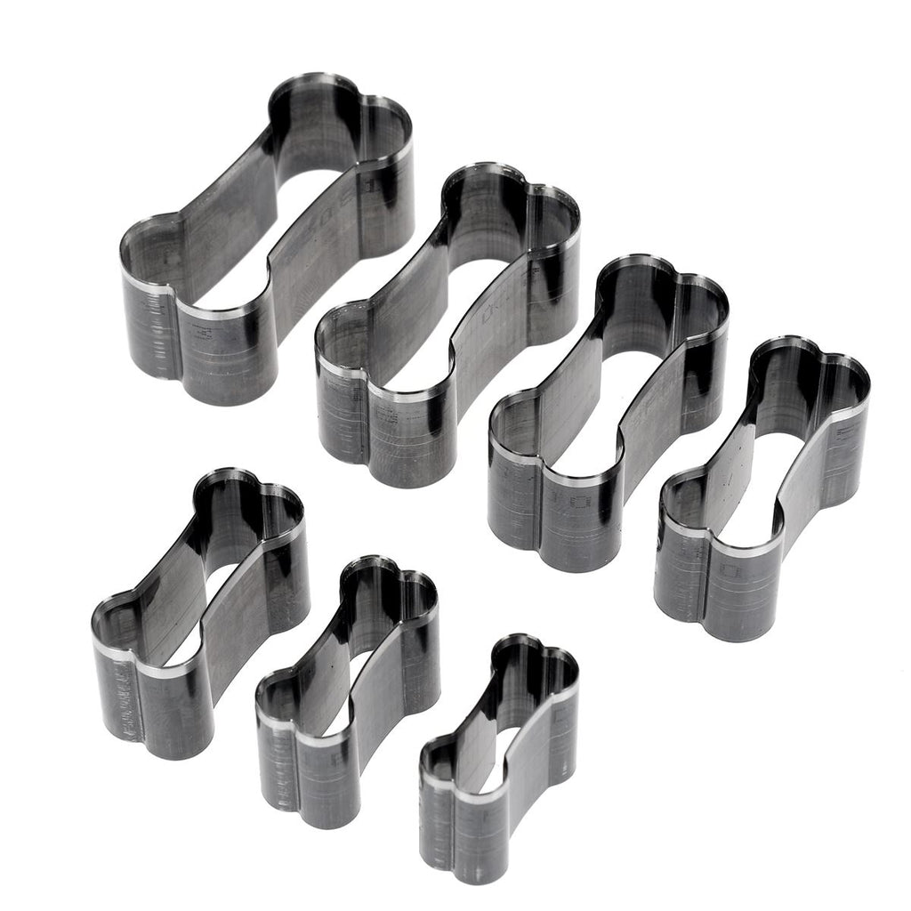 Achieve clean, precise cuts in your leather with this set of 7 different-sized steel cutters, designed for creating bone-shaped cutouts. Perfect for making personalized dog collars, name tags or contact information, food bowl labels, gifts for pet owners, and more.
