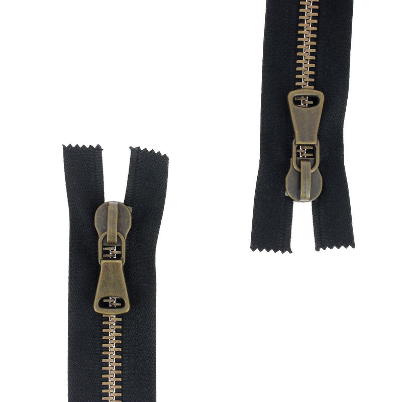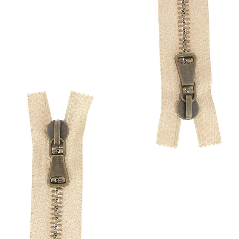 Enrich your leather goods creations with ingenuity and refinement, thanks to this zipper with two independent sliders. Thanks to the double slider you can open your creation on both sides in X, but you can also change the opening direction in O (More information in the closing guide ). This Zip is non-separable with metal stops.
