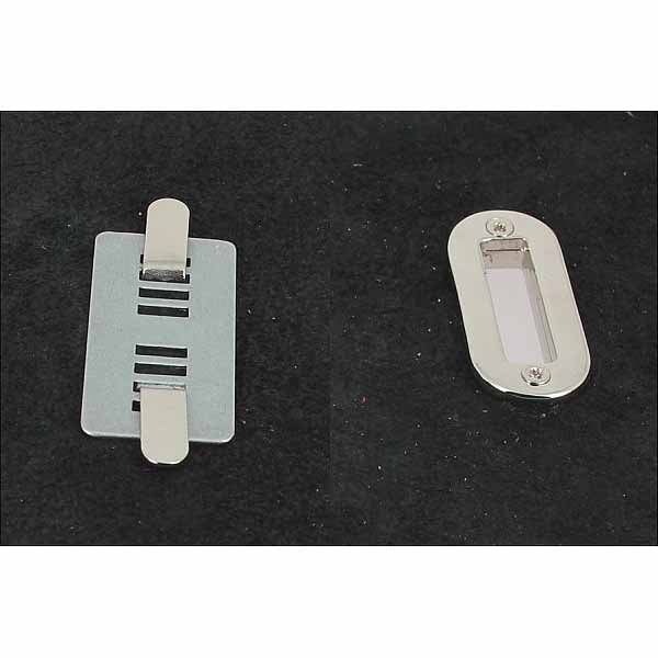 - Place the plate and spread the clasp legs (as for a Parisian fastener) to hold the leather.