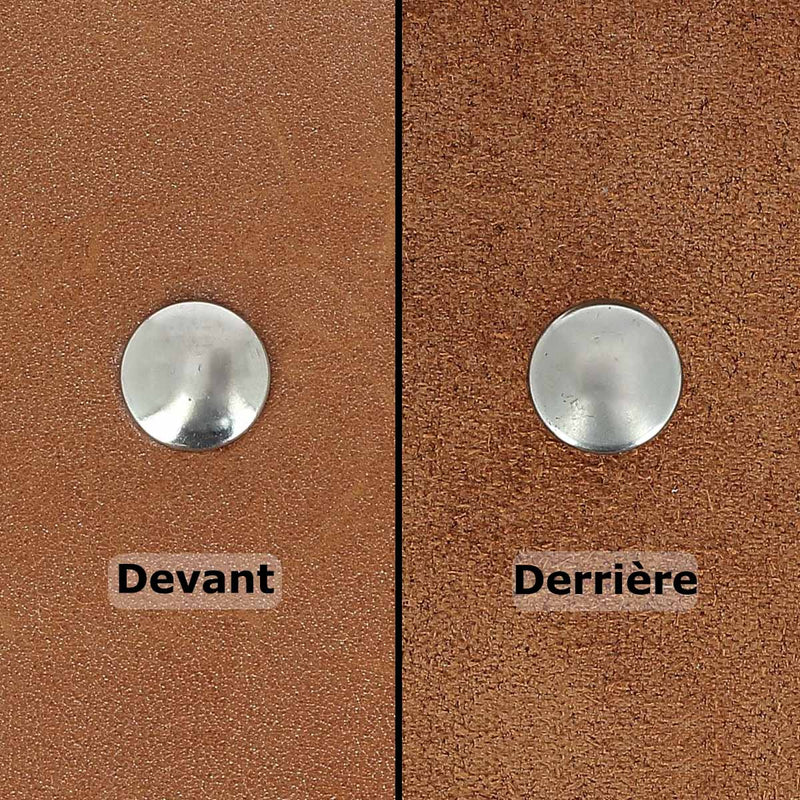 These brass rivets, size 1 , can be used to crimp a thickness of leather between 1 and 2.5 mm.