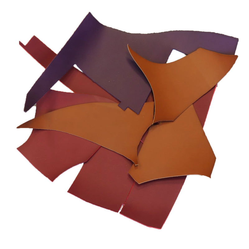 This lot includes several scraps of leather with different finishes (aniline, semi-aniline, full grain...)