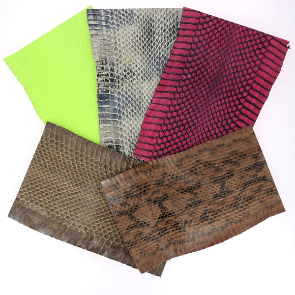 Each lot is unique and includes a variety of 3 different pieces of snake leather 40 cm long and between 8 and 15 cm wide.