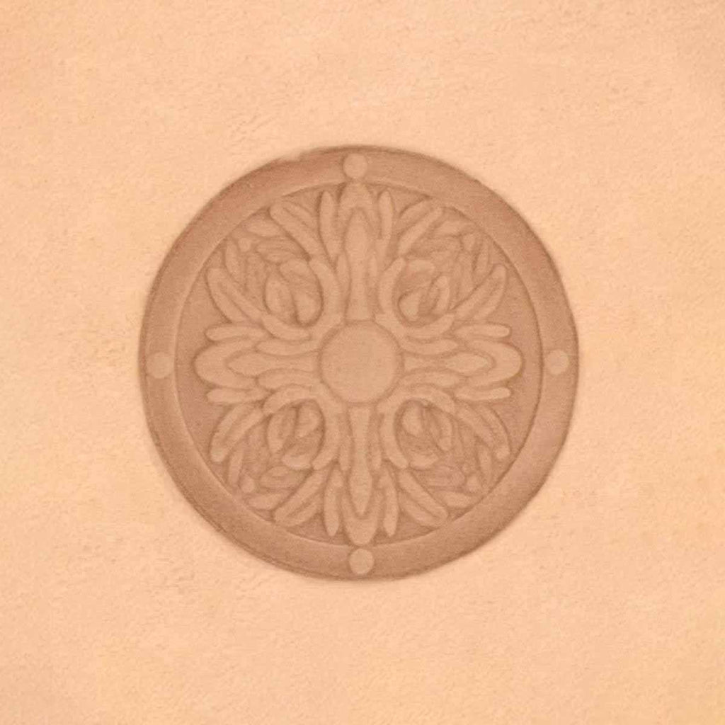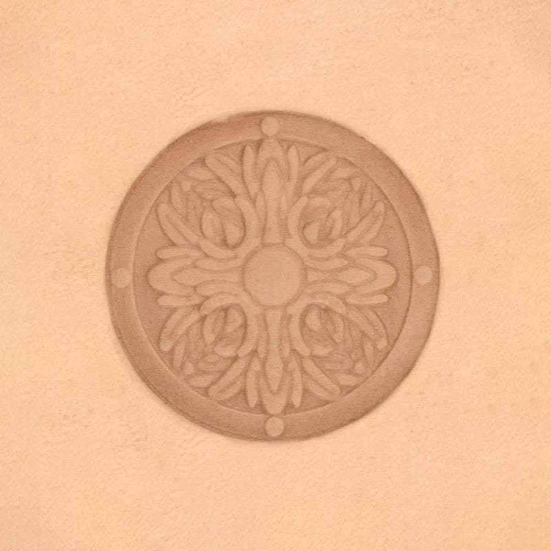 Floral circle stamp is to be used on vegetable tanned leather . Moisten your leather with a sponge before marking the pattern.