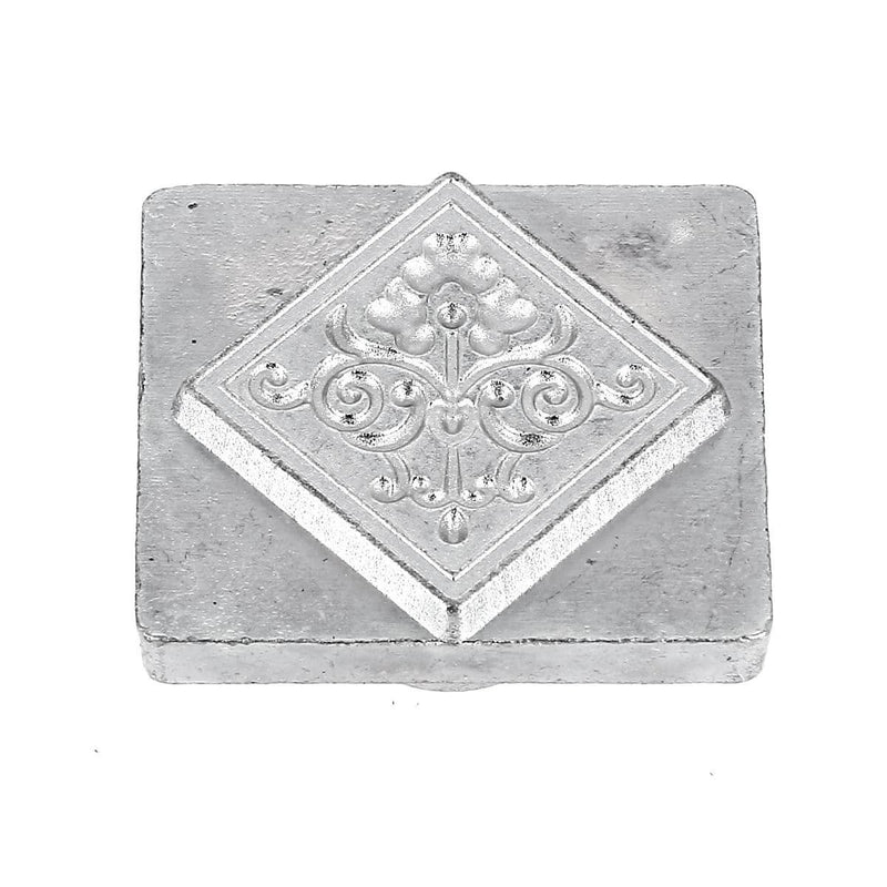 This 3D stamp represents a diamond with ornamental motifs.