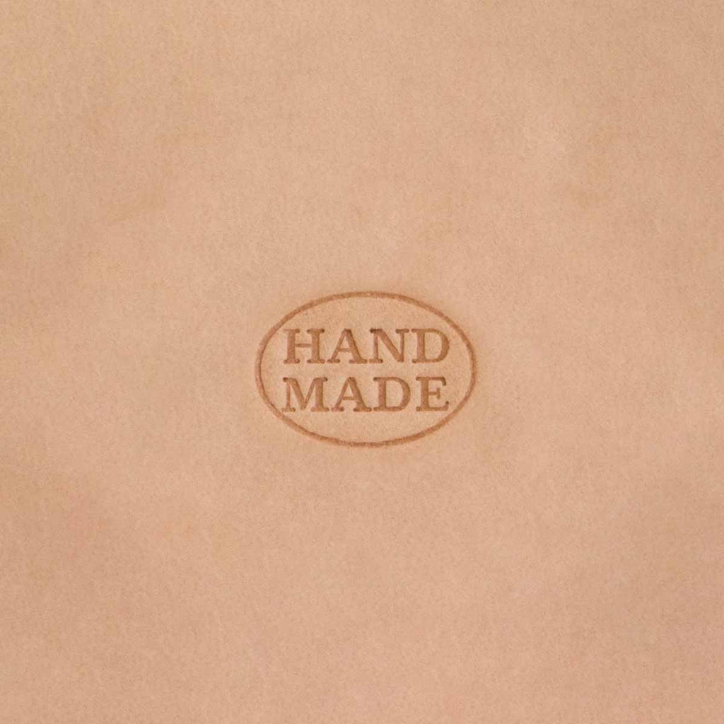 This stamp represents an oval with the inscription " hand made " which means " handmade ".
