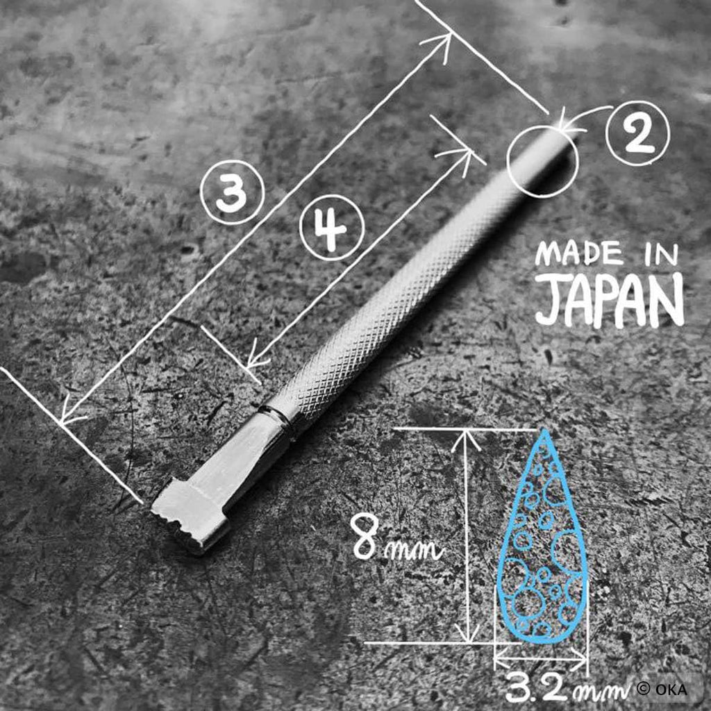 OKA is a Japanese manufacturer with a passion for working with leather . It manufactures high quality tools that are pleasant to use and suitable for beginners and experienced alike.Matting handle stamps are used to create background textures, on the periphery of the drawing in order to highlight it and fill the space around it. They increase the depth and thus make it possible to bring out the reliefs