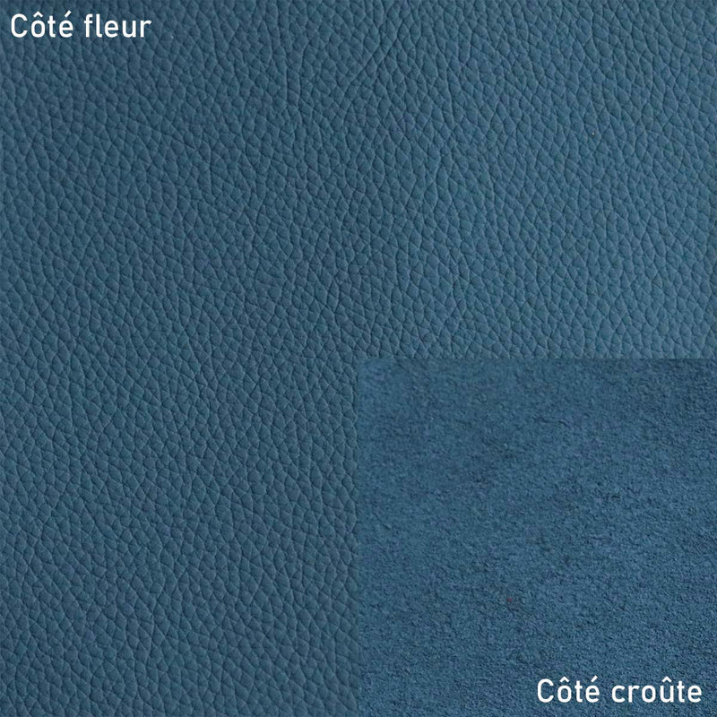 This leather offers an excellent balance between finesse and strength. Easy to work with, it's ideal for making bags, pouches, accessories, and leather goods. Its intense yet subtle mineral blue color will add depth to your creations without adding visual bulk.