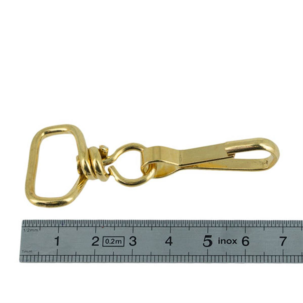 Carabiner with rotating system, called "bail" and rectangular loop for a leather strap of 20 mm maximum width. Side opening