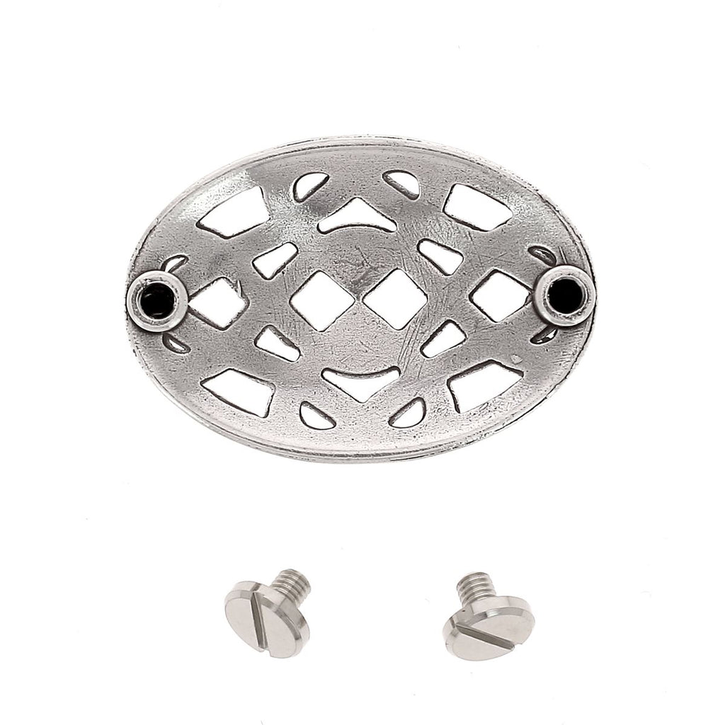 The ornament is fixed with 2 metal screws provided that you must screw with a flat screwdriver.