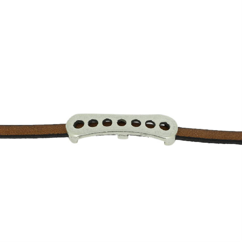 Sliding seven holes for a leather strap up to 5 mm wide and 2.5 mm thick. Ideal for your creations of bracelets, jewelry and decorations.Material: Zamac guaranteed nickel free