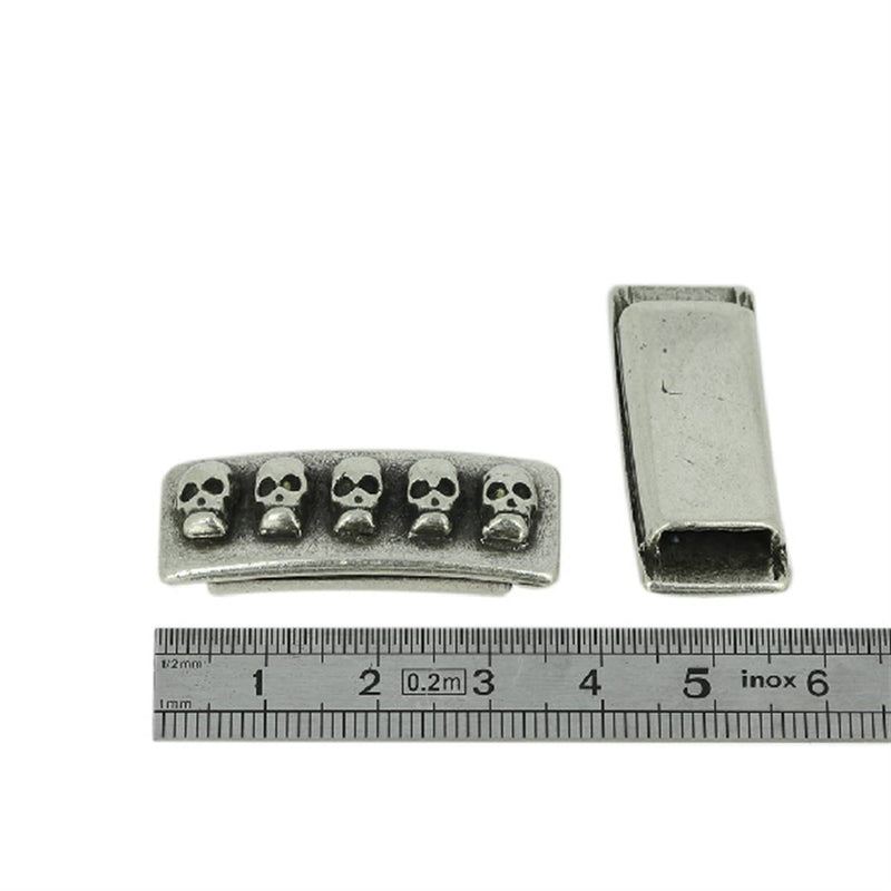 Sliding with five skulls for a leather strap 10 mm wide and 2.5 mm thick maximum. Ideal for your creations of bracelets, jewelry and decorations.Material: Zamac guaranteed nickel free