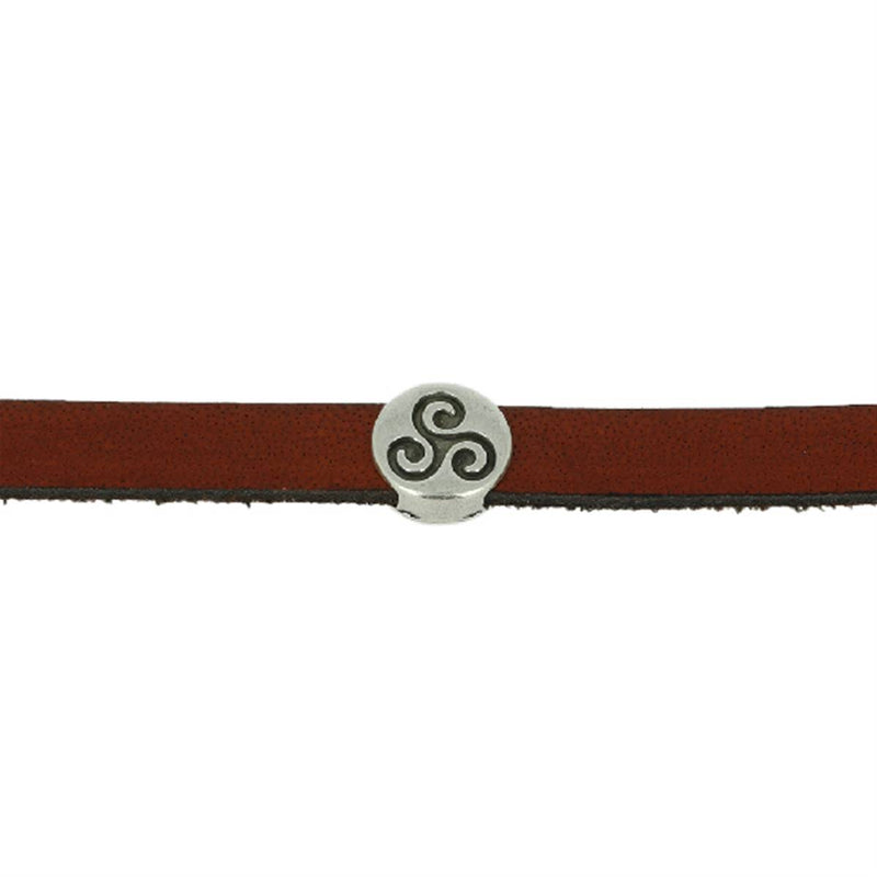 Triskel slider for a leather strap 10 mm wide and 2.5 mm thick maximum. Ideal for your creations of bracelets, jewelry and decorations.Material: Zamac guaranteed nickel free
