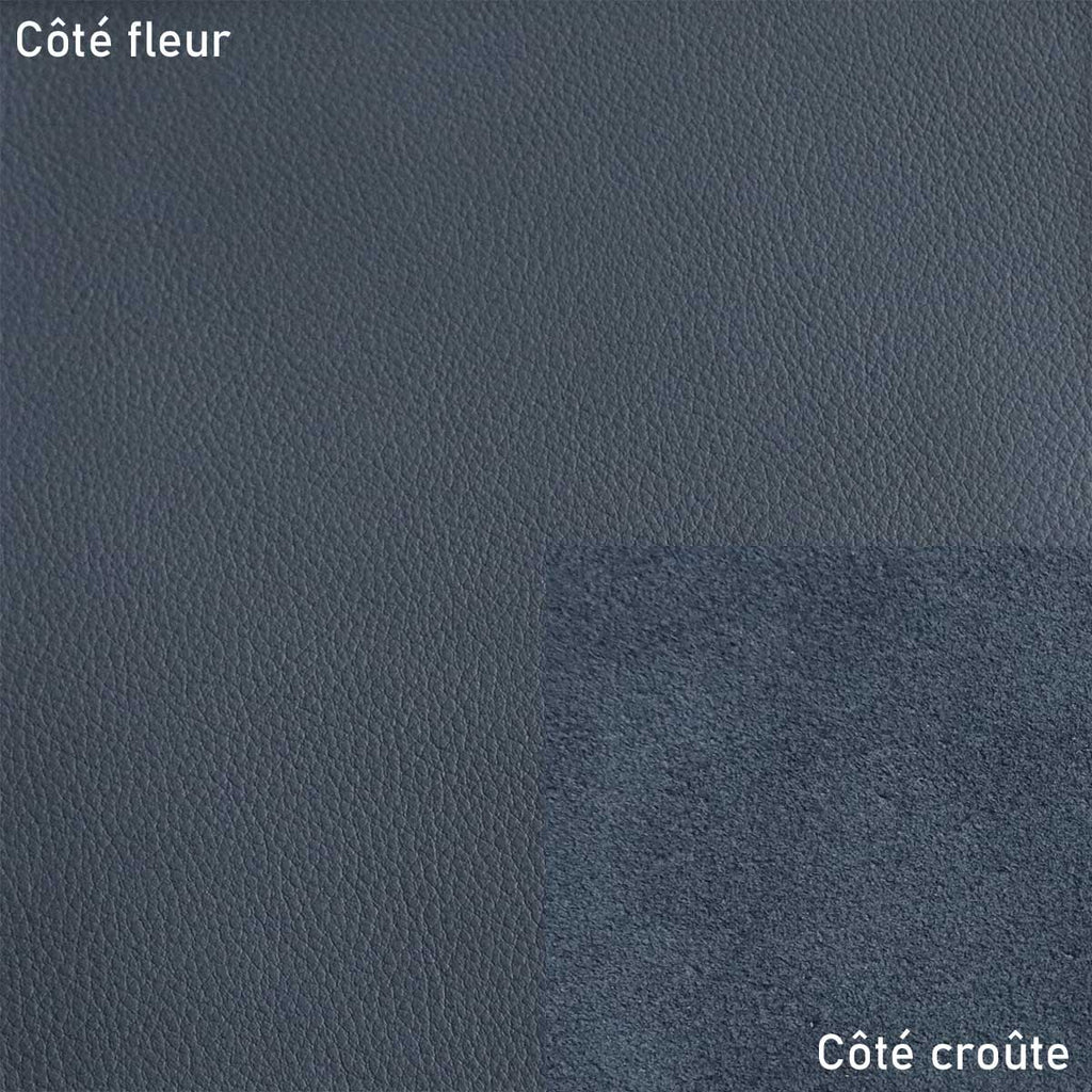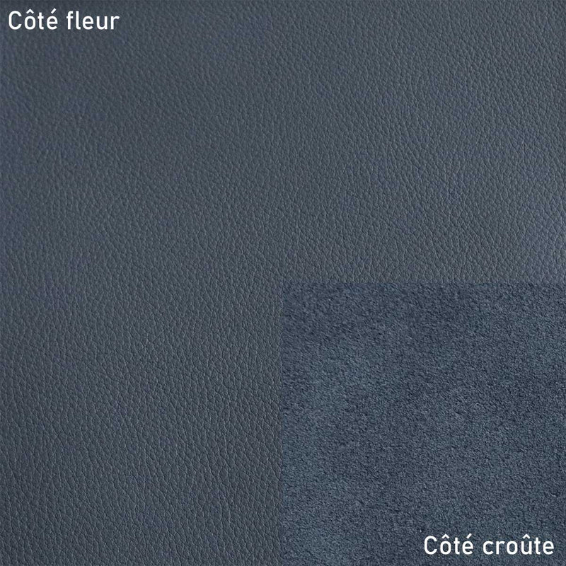 A leather with a matte finish and subtle natural grain, perfect for understated and refined creations. This dark blue-dyed cowhide leather offers a slight natural grain, discreet but present, which adds character without altering the finesse of the touch.