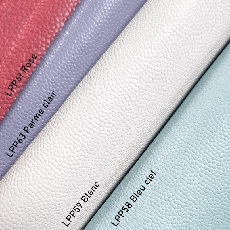 This pink caviar-grain calfskin, enhanced by a slight pearlescent effect, adds a touch of softness and shine. Its suppleness and finesse make it an ideal choice for leather goods, crafts, and decoration.