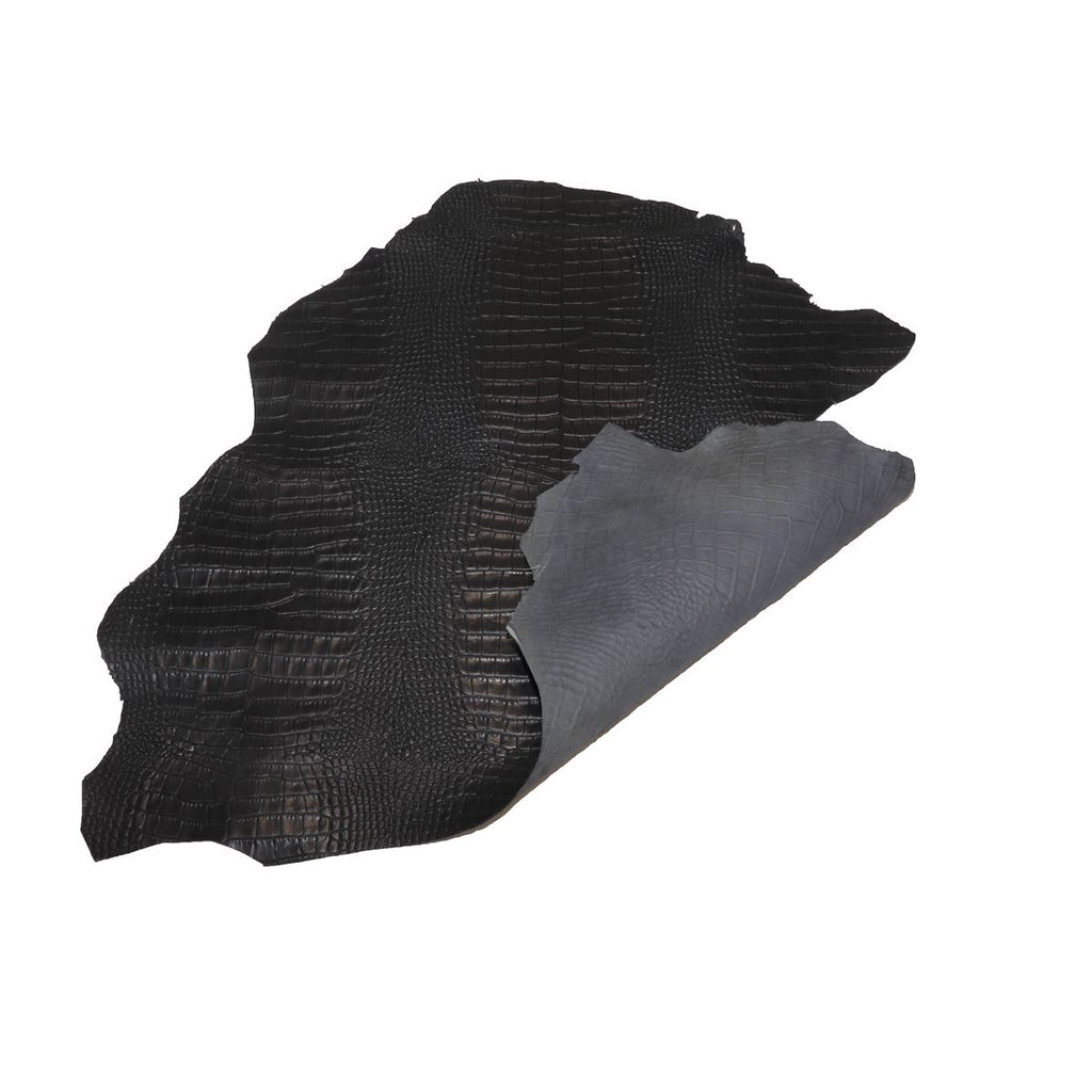 This whole skin of black basane leather is ideal for all your leather creations. Its imitation crocodile caiman style finish is marked by embossing on the smooth basane leather. This very good quality skin is resistant and comes from a French tannery .