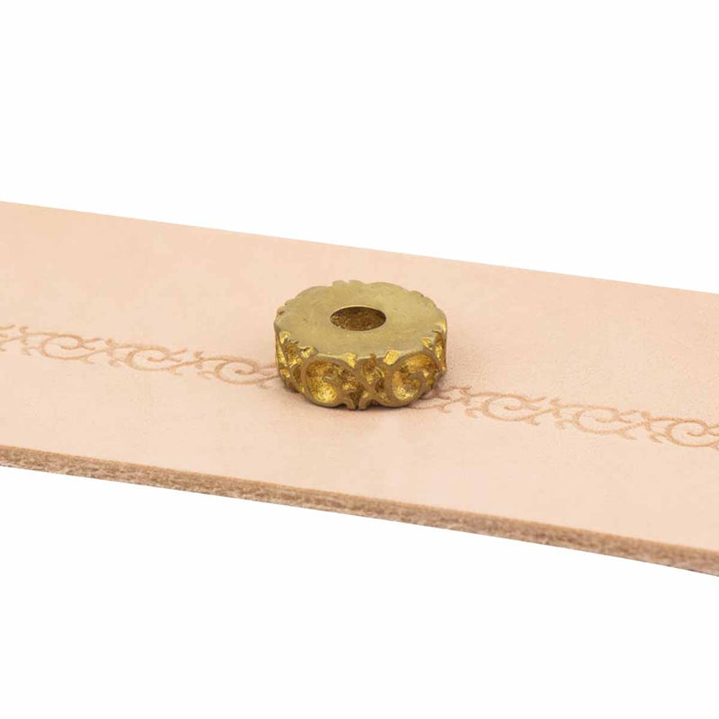 This brass wheel quickly attaches to the handle of the stitch marking wheels (Tandy Leather ref. 8091-00 or Ivan ref. 8091-21 ) or to the handle for embossing and marking wheels (Ref. TB320 ). It is compatible with all interchangeable embossing wheel handles, including the Craftplus 83110-00 handle thanks to these adapter rings.